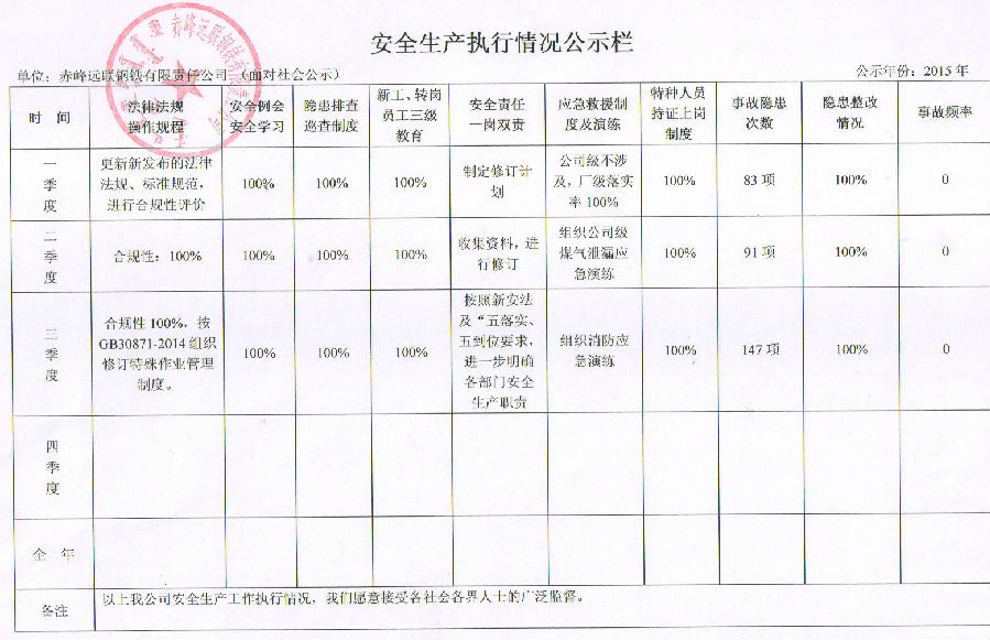 安全生產執行情況社會公示
