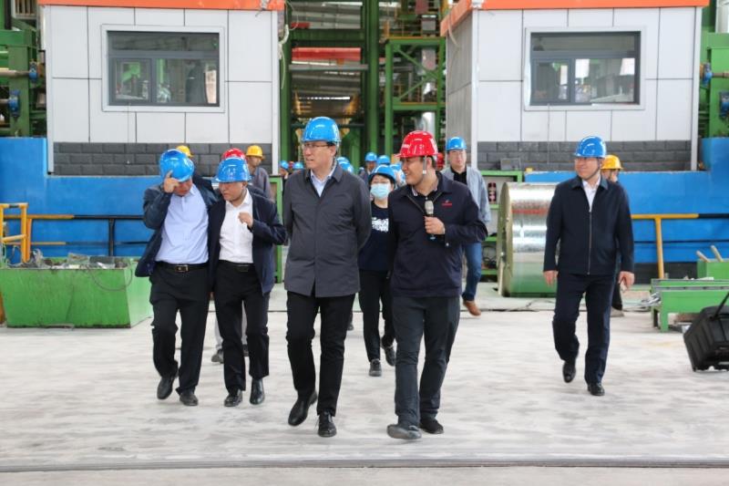 5月21日上午,觀摩團一行在市委常委、統戰部部長孟和巴特爾的帶領下來到我公司。公司總經理佟國山、黨委書記劉欣、黨委副書記李曉杰在現場迎接,并陪同觀摩團參觀了公司年產200萬噸冷軋鍍鋅一期項目。劉欣書記代表公司詳細介紹了該項目的生產工藝流程,讓觀摩團成員了解了黑色的熱軋帶鋼蛻變為光亮的鍍鋅帶鋼的過程。